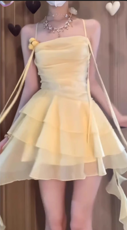 Fairy Summer Short Skirt Ruffle Irregular Spaghetti Strap Dress L18