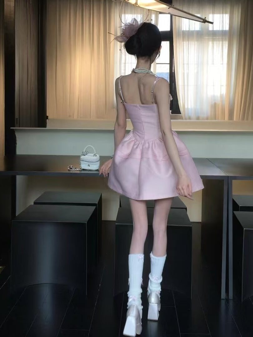 Pink Bow Sleeveless Short Homecoming Dress Birthday Dress L24