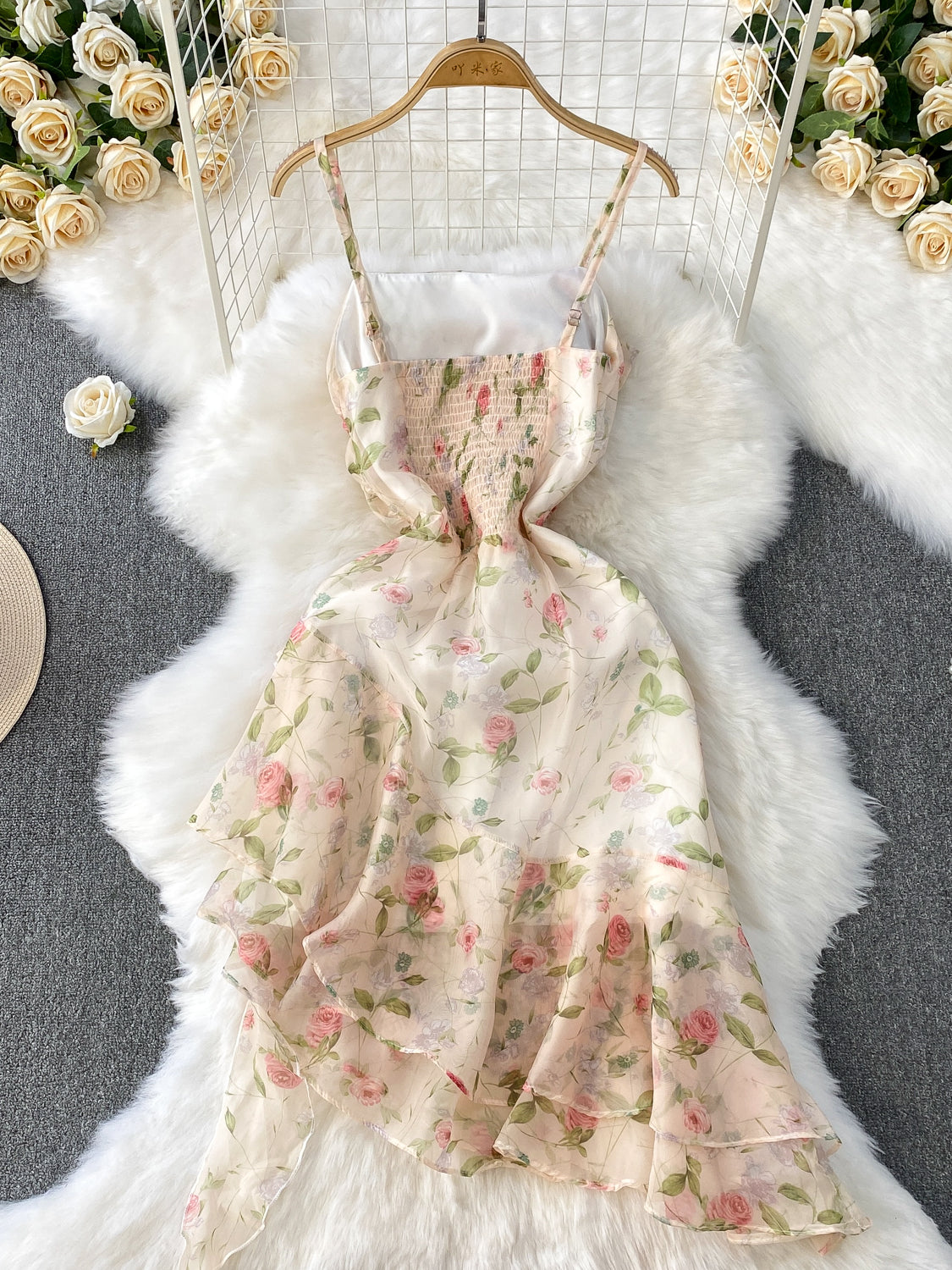Printed Spaghetti Strap Dress Summer Irregular Fairy Skirt L62