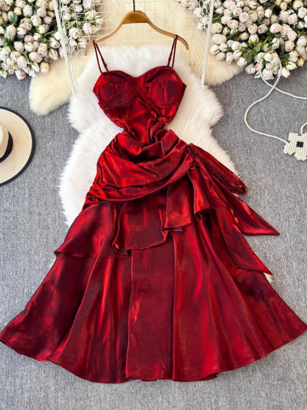 Sexy Satin Backless Dress Summer Irregular Ruffled Long Dress L45