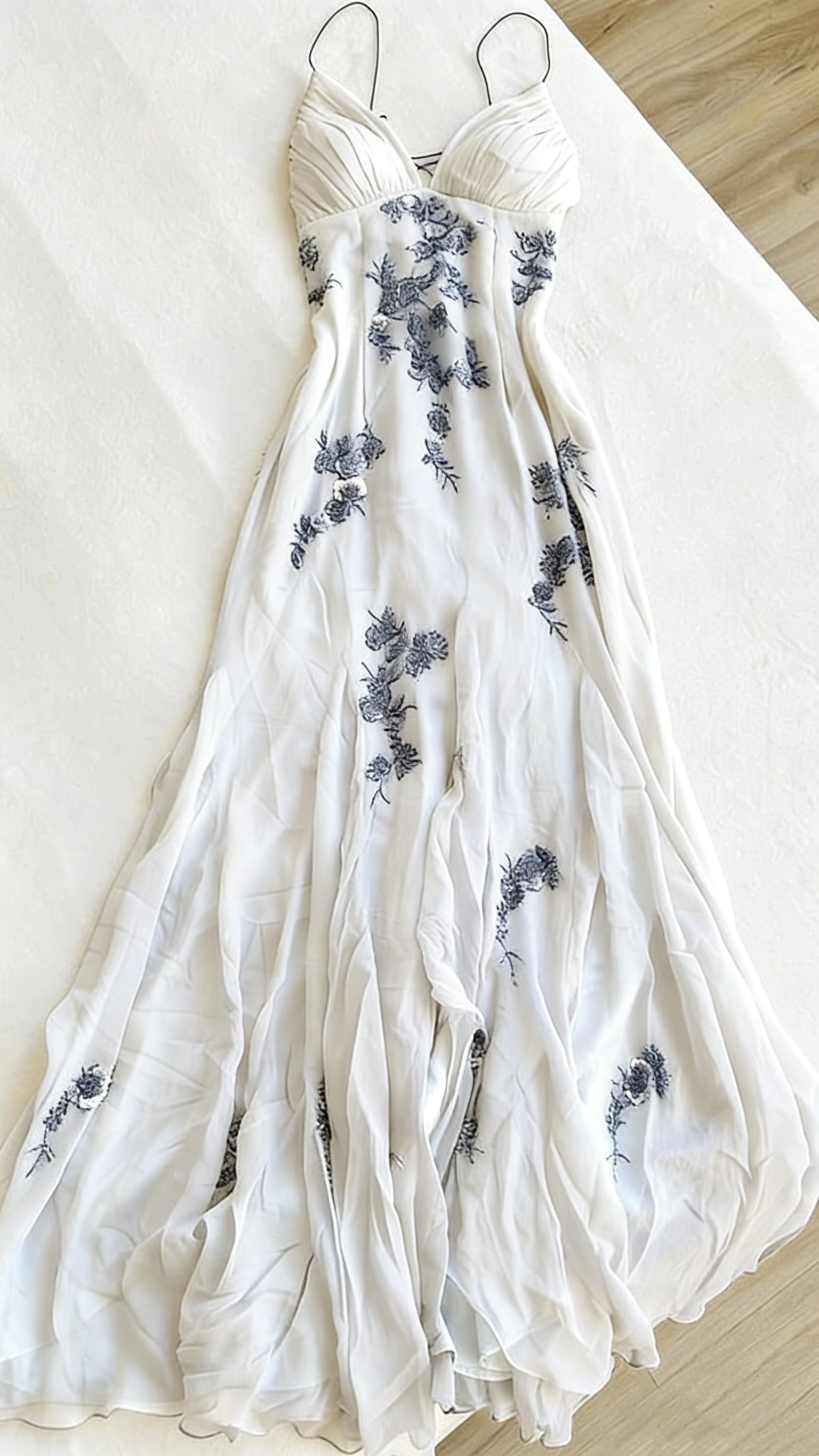 Spaghetti Straps Appliques A Line Long Prom Dresses 2491