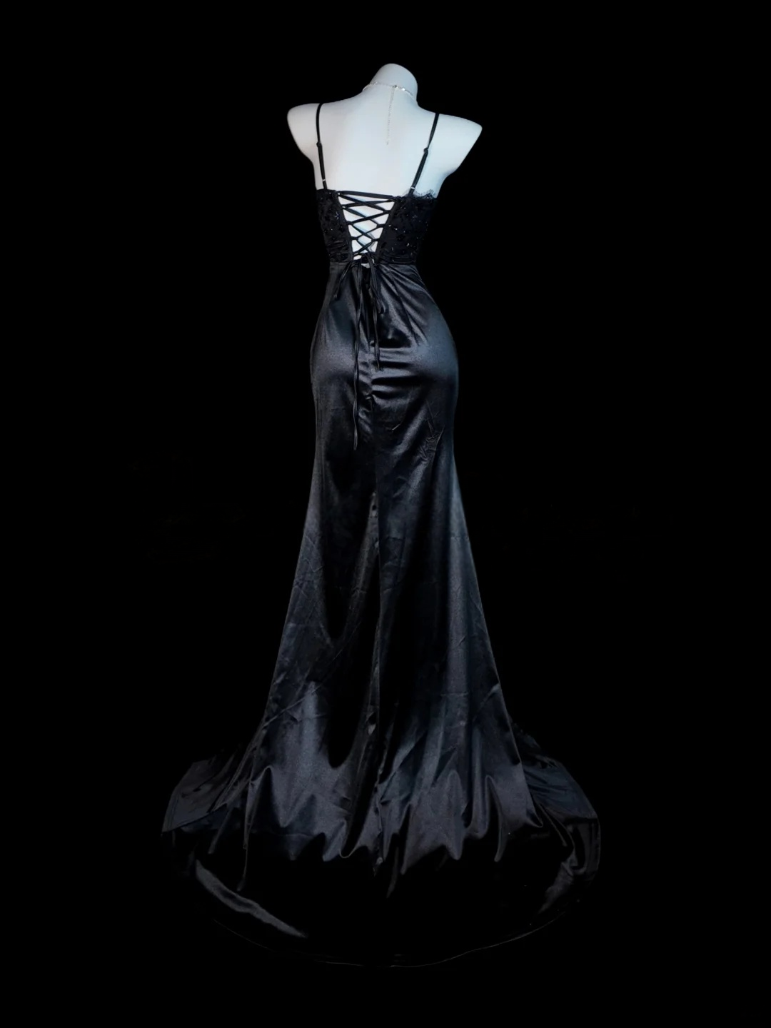 Spaghetti Straps Black Mermaid Prom Dress Satin Evening Dress J9623