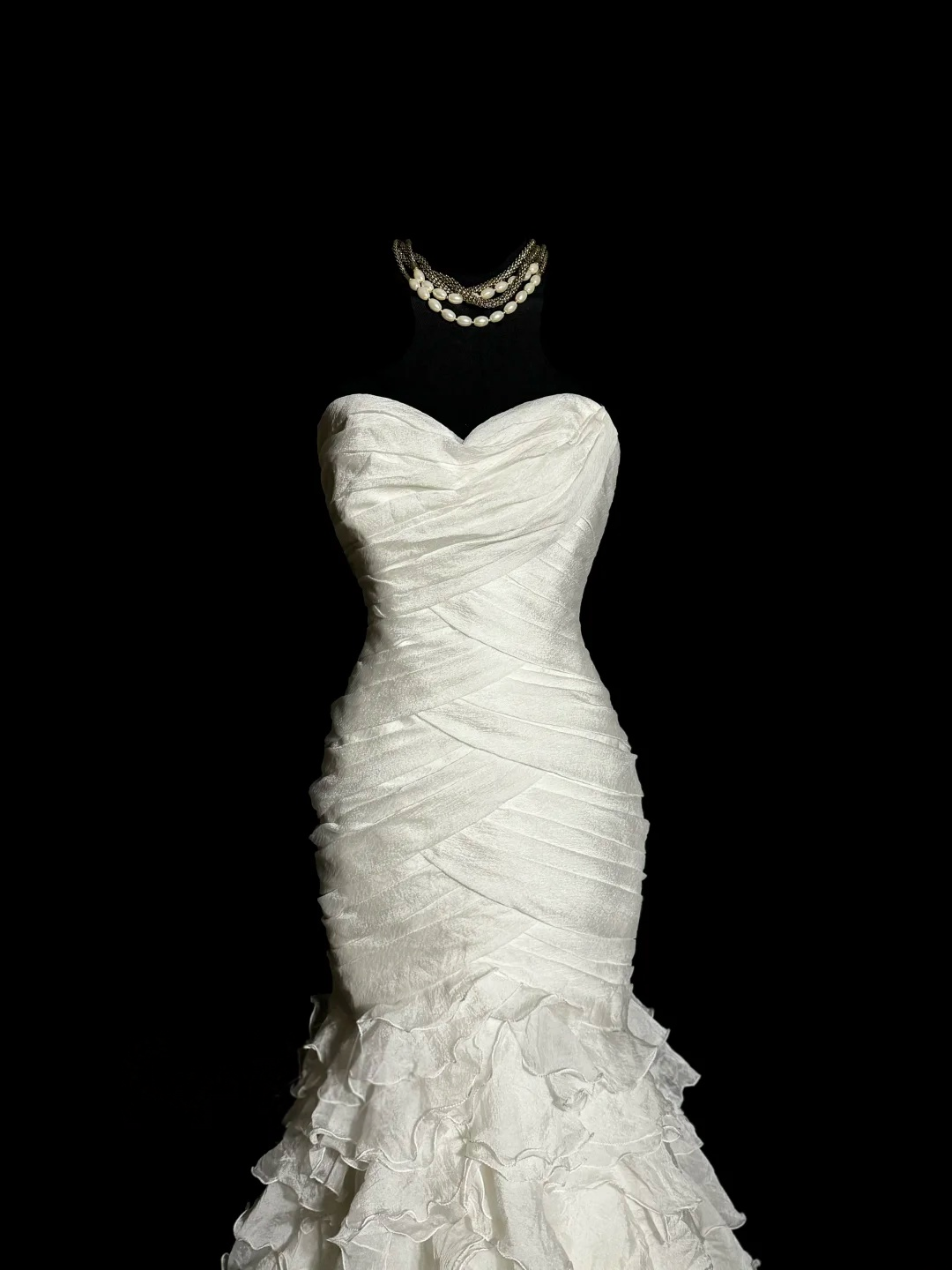 Sweetheart Ivory Mermaid Wedding Dress Ruffled Wedding Gown For Bridal J9594