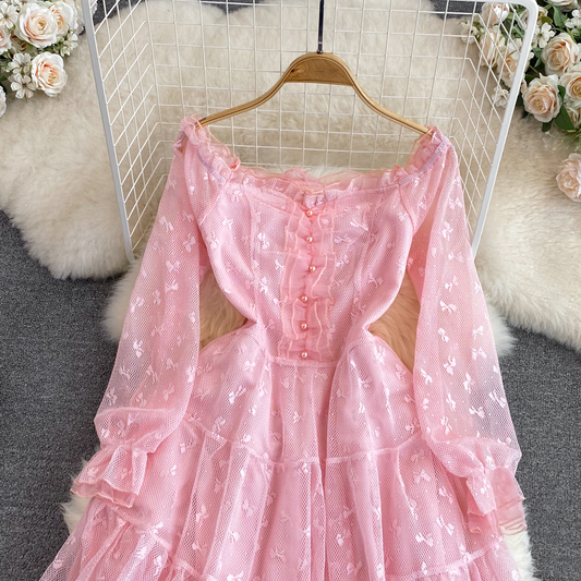 Pink Sweet Fairy Square Neck A Line Mesh Princess Dress 1510