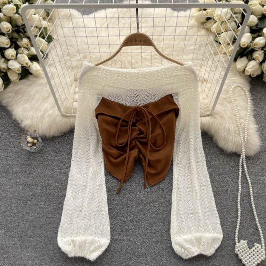 Women's Off-shoulder Exposed Color Slim Short Sweater Long-sleeved Sweater 1902