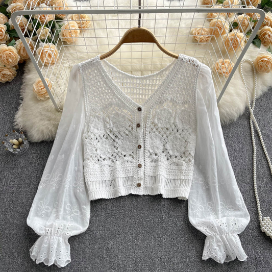 Sweet Embroidered Lace V-Neck French Style Shirt Top 1871