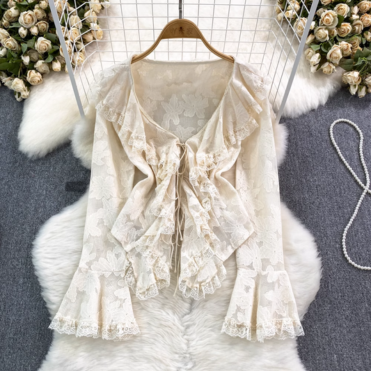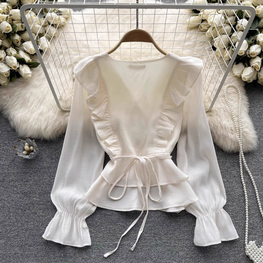 Irregular Ruffle Shirt Bell Sleeve Fairy Top 1067