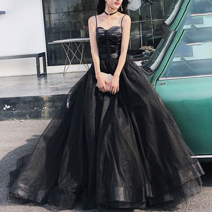 Black Spaghetti Strap Long Prom Dress Formal Evening Gown 502
