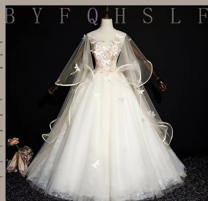 Blue Long Sleeves Ball Gown with Butterfly Sweet 16 Birthday Party Dress 206