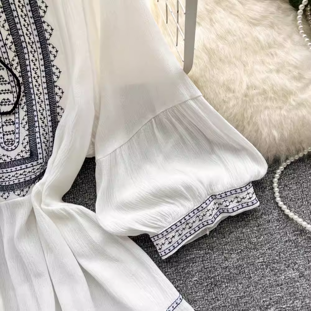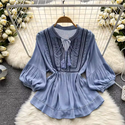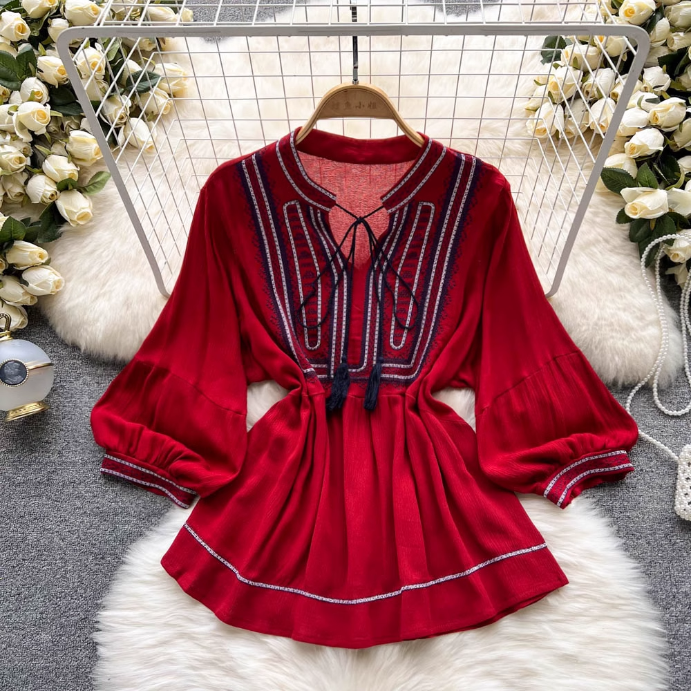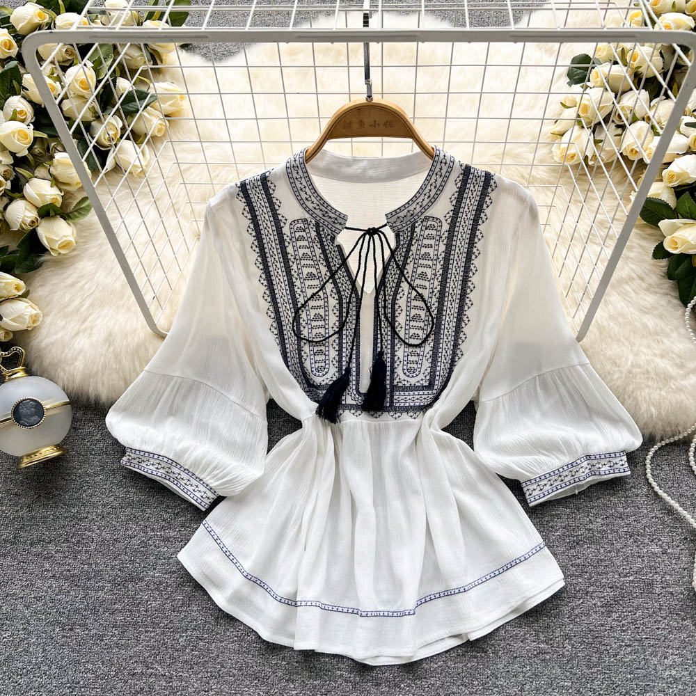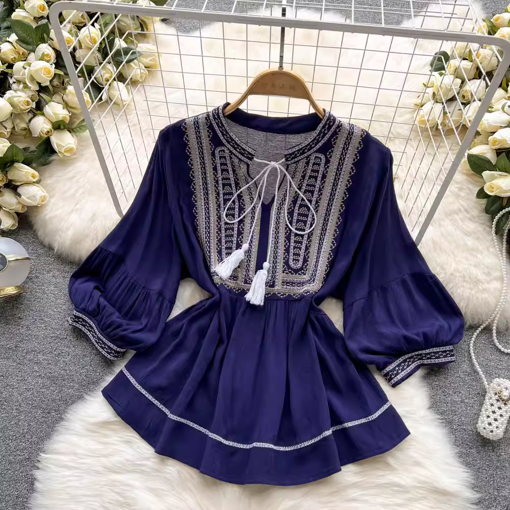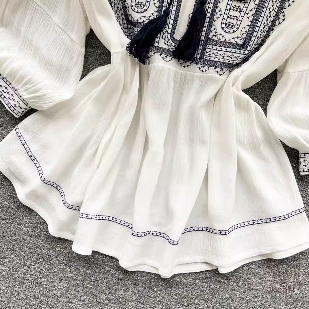Bohemian Embroidered Tassel Top Long Sleeves Shirt 1047