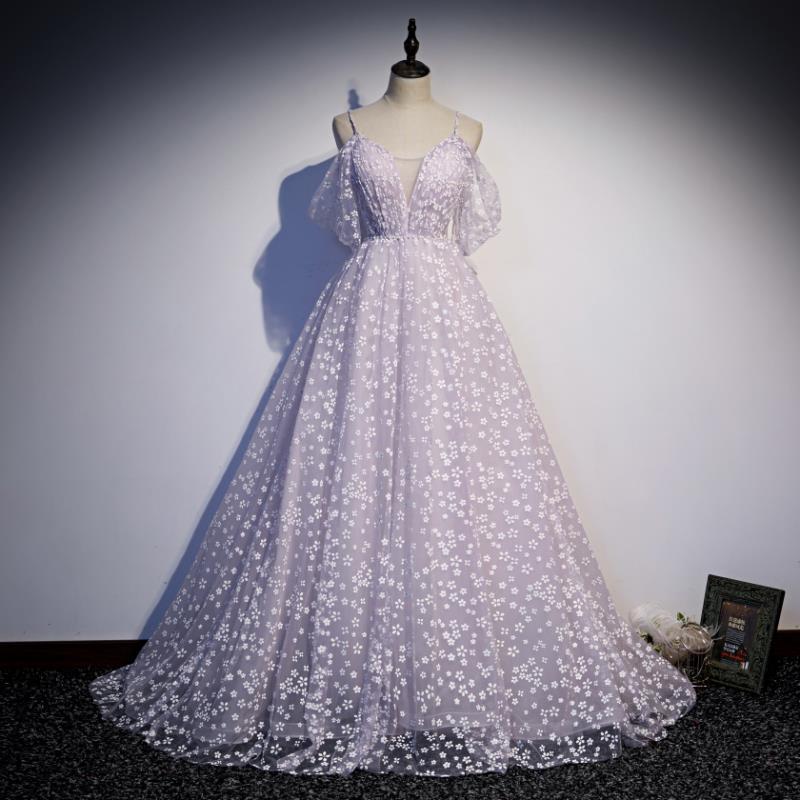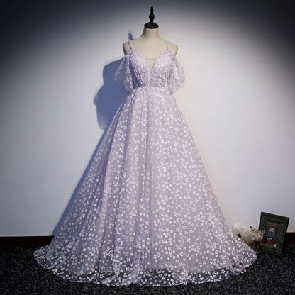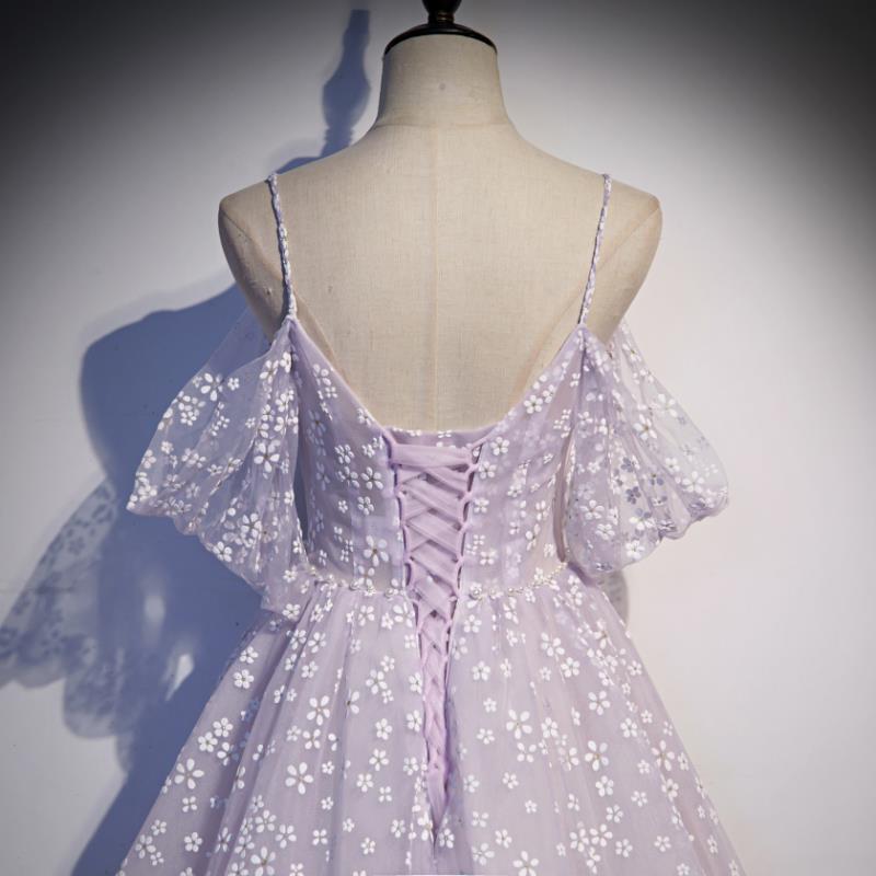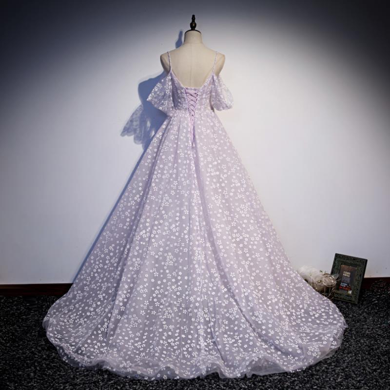 Cute Purple Tulle Prom Dress Off Shoulder Long Evening Dress Birthday Gown 229