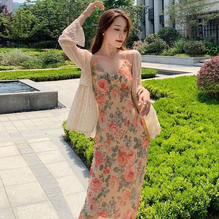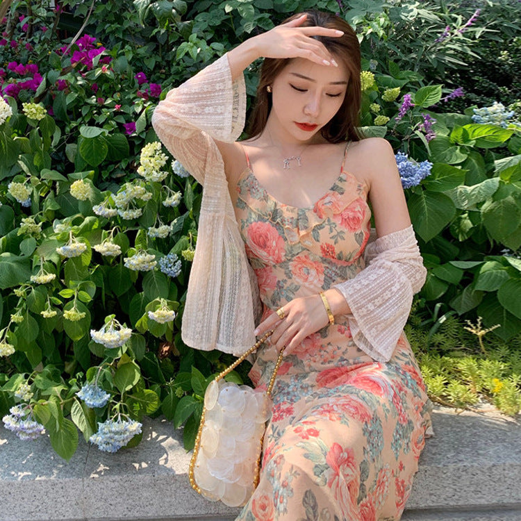 Floral Dress Women Spaghetti Strap Summer French Dress 812