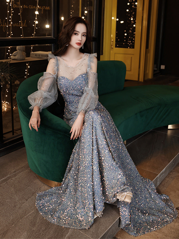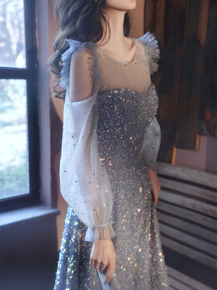 Sequins Long Sleeves Prom Dress Sparkly Evening Formal Dress 194