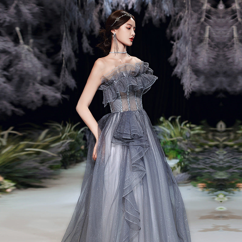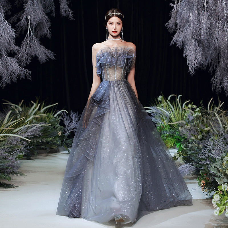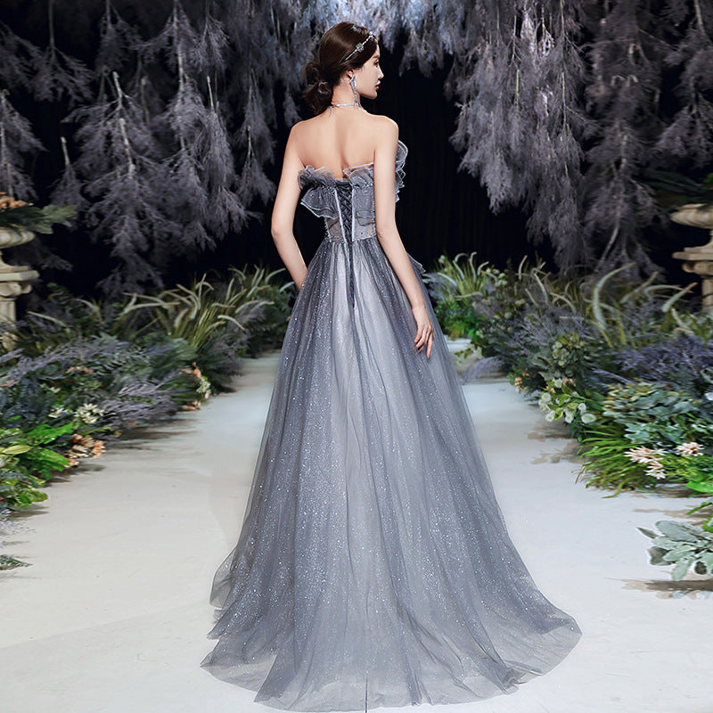 Strapless A Line Shiny Prom Dress Puff Formal Evening Party Gown 584