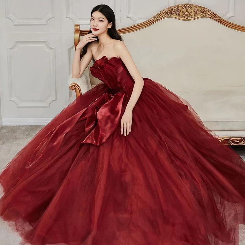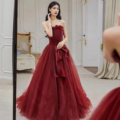 Strapless Long Prom Dress Burgundy Formal Evening Ball Gown 510