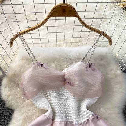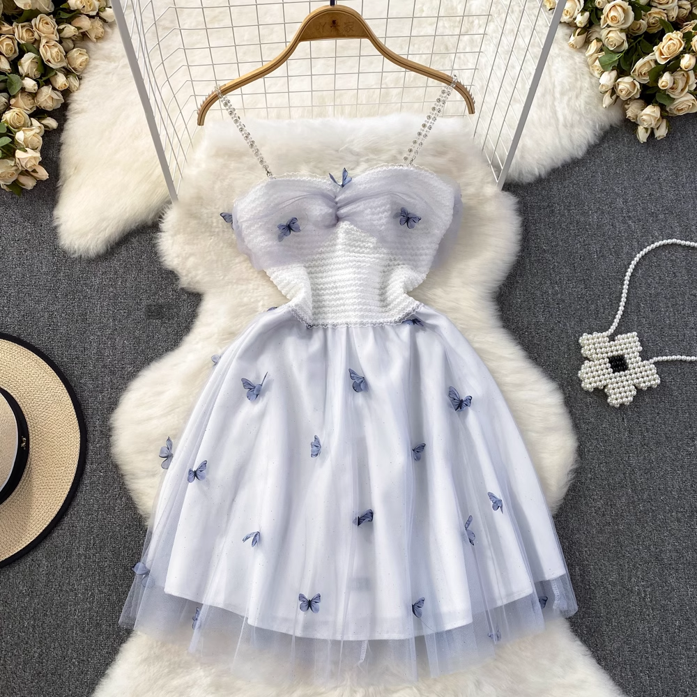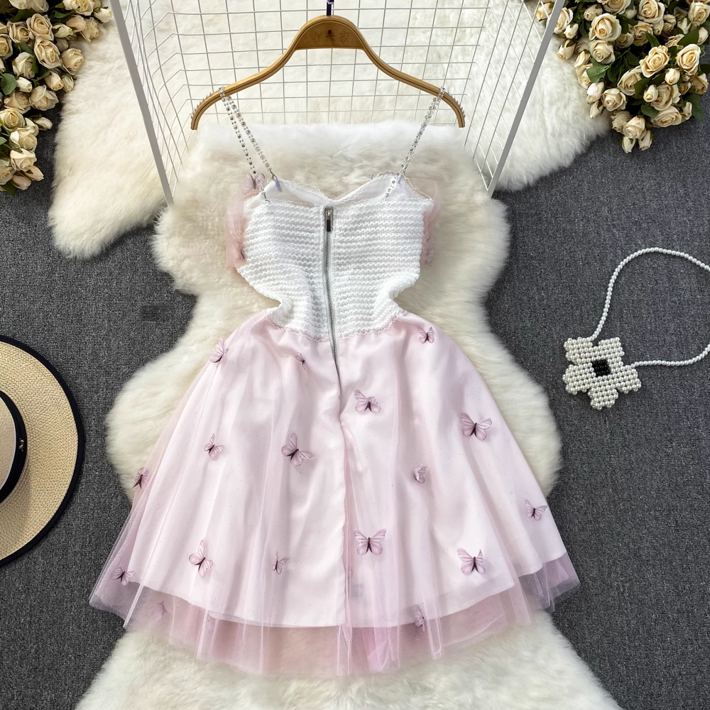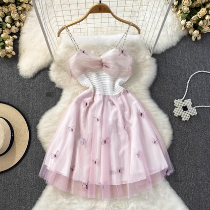 Sweet Spaghetti Strap Fairy Mid-Length Mesh Dress 841