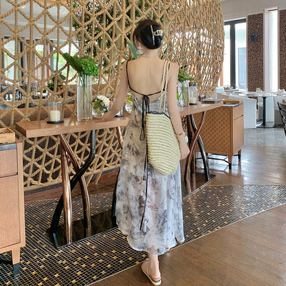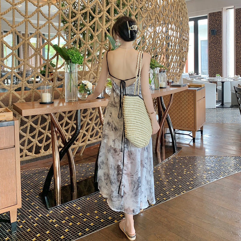 Women Summer Spaghetti Strap Dress Sexy Backless Dress 791