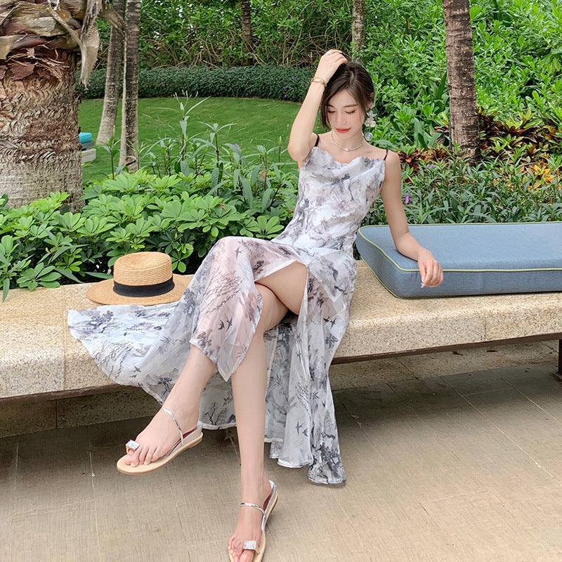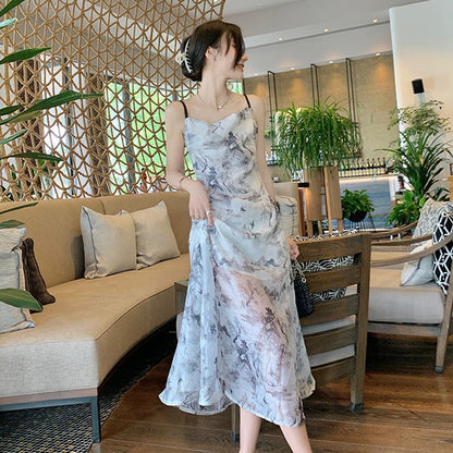 Sweet Spaghetti Strap Fairy Mid-Length Mesh Dress 841