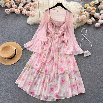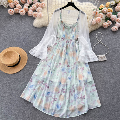 Women Summer Sweet Chiffon Floral Dress 1159